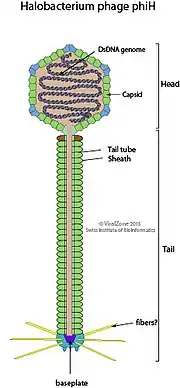 - ↑ a b c d e Halobacterium phage phiH. NCBI Taxonomy Browser, equivalent: Bacteriophage phi-H, … (no rank). txid169684[Organism:noexp]. NCBI Nucleotide. Halobacterium phage phiH; NC_052650.1. NCBI Nucleotide. Halobacterium phage phiH variant phiH1, complete genome.