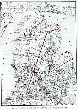 Die südliche Grenze verlief wenige Meilen nordöstlich von Jackson westwärts zu dem nordöstlich gelegenen Kalamazoo. Von da an ging es direkt zum oberen Thunder Bay River in den südlich-zentralen Teil des Montmorency County und dann entlang des Flusses zur Mündung in die Thunder Bay nahe Alpena. Von dort ging es zu der internationalen Grenze zwischen den Vereinigten Staaten und der britischen Provinz Oberkanada und dann südwärts zu der Grenzlinie, die durch den Vertrag von Detroit 1807 geschaffen worden war. Diese verlief vom Ufer des Huronsees im nordöstlichen Sanilac County nach Südwesten zu einem Punkt einige Meilen nordöstlich von Lansing und dann genau südlich zum Ausgangspunkt.[1]