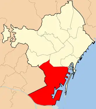 - Bezirk II – (La Marina + Zona Franca + Montjuïc + Poble-sec) (zehn Stadtteile)