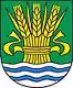 Blasonierung: „In Grün eine aus einem mit zwei blauen Wellenleisten belegten silbernen Wellenschildfuß wachsende goldene Getreidegarbe mit drei Ähren, vier Blättern und einer Bindeschleife.“