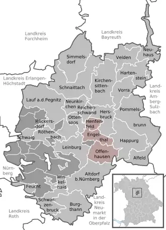 | Lage der Verwaltungsgemeinschaft Henfenfeld im Landkreis Nürnberger Land | ||