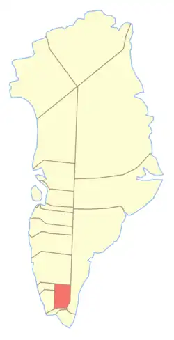 Kommune Kujalleq | seit 2009 | 6.292 | Distrikt Qaqortoq (3127) Distrikt Narsaq (1591) Distrikt Nanortalik (1574) | |