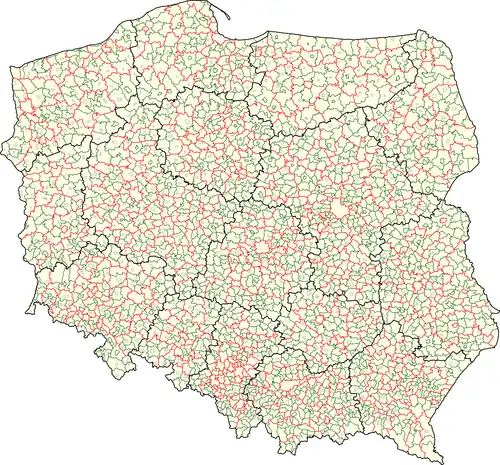 Die territoriale Gliederung der Selbstverwaltung in Polen umfasst, nach der 1999 in Kraft getretenen Reform, nun drei Ebenen: Kommunen (gmina), Kreise (powiat) bzw. kreisfreie Städte (miasto na prawach powiatu) und regionale Verwaltungsbezirke, die sogenannten Woiwodschaften (województwo).[1]