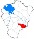 - ↑ a b c Stadt gehört nicht zum Rajon, sondern bildet eigenständigen Stadtkreis; Einwohnerzahl der Stadt nicht bei der Berechnung der Bevölkerungsdichte berücksichtigt