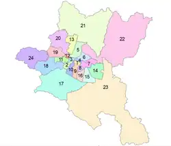 Jeder dieser Stadtbezirke hat zumindest einen Bürgermeister.