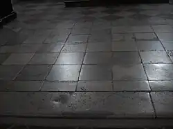 Freigelegtes Pflaster an der Innenfront des Gebäudes