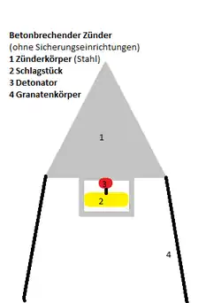 Für massive panzerbrechende Geschosse werden Bodenzünder eingesetzt, die als Aufschlagzünder mit Verzögerung wirken.[2]