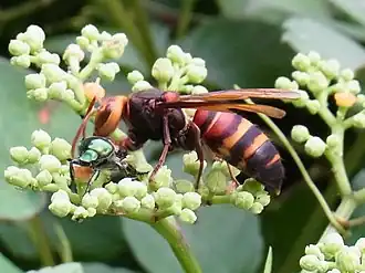 Die Larven von Vespa ducalis fressen im Wesentlichen nur die Puppen und Larven von Papierwespen. Daher greifen adulte Tiere oft die Nester von Papierwespen an und jagen die Larven, während sie die erwachsenen Tiere ignorieren. Sie kehren häufig zur selben Zielkolonie zurück, um sie zu plündern.