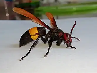 - ↑ a b c d The Greater Banded Hornet Has Found Its Way To Guam. In: CNAS News. College of Natural and Applied Sciences, University of Guam, 1. Mai 2018, abgerufen am 5. März 2023.