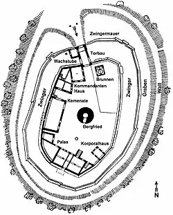 | Erhaltungszustand | Erhalten mit Ausnahme der Kaserne/Kemenate | |