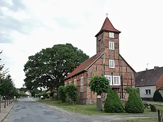 - Die Dorfkirche, eine Fachwerkkirche mit einem Dachturm, wurde von 1828 bis 1831 erbaut.