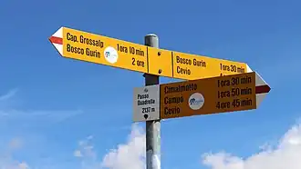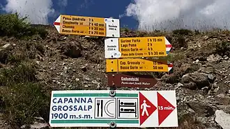 ![]() Wegweiser auf der Alpe Quadrella (zwölfte Etappe).