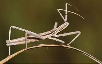 Den typischen Lebensraum der Wanzen bildet steppenartige Grasvegetation, in Spanien ausschließlich auf dem Horstgras Hyparrhenia hirta, in Nordafrika auch Halfagras (Stipa tenacissima)[1][3] (in Ägypten wird außerdem Panicum turgidum angegeben[4]). Die gut getarnten Wanzen lauern in den Blatthorsten an der Basis ihrer Wirtspflanzen auf Beute.[1] Die Art ist in ihrem Nahrungsspektrum nicht wählerisch (polyphag), zum Beutespektrum gehören kleine, weichhäutige Insekten wie Taufliegen (Drosophilidae), Schmetterlingsraupen und Echte Grillen (Gryllidae).[3] Die Art bildet eine Generation pro Jahr aus.[1] Die Imagines beobachtet man von März bis Oktober.[1] Die Nymphen kommen im Juni zum Vorschein. Die beiden letzten Nymphenstadien sind offenbar in der Lage, zu überwintern (Hibernation).[1] In Katalonien gilt die Art aufgrund des Rückgangs ihres typischen Lebensraumes als bedroht (IUCN-Kategorie VU D2).[3]