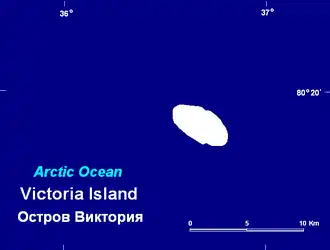 Die Victoria-Insel ist die westlichste der russischen Arktisinseln. Von Alexandraland, der westlichsten Insel Franz-Josef-Lands, ist sie 160 km entfernt, von Kvitøya, der östlichsten Insel Spitzbergens, 61 km. Die Victoria-Insel hat eine Fläche von 10,8 km² und ist fast vollständig von einer Eiskappe bedeckt, deren höchster Punkt 105 m über Meeresniveau liegt.[1] In den 1990er Jahren waren lediglich zehn Hektar Land an der Nordspitze der Insel nicht vergletschert. Seitdem hat sich das Eis zurückgezogen und einen schmalen Strand an der Nordwestküste freigegeben. Die Fläche der Eiskappe betrug 2010 nur noch 6,1 km².[2]