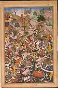 Erstes Akbar-nāma: Schlacht von Sarnal (Bild 179). Laʿl. -