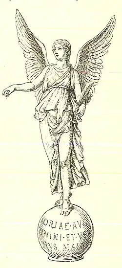 - ↑ Tonio Hölscher: Victoria Romana. Archäologische Untersuchungen zur Geschichte und Wesensart der römischen Siegesgöttin von den Anfängen bis zum Ende des 3. Jhs. n. Chr. Philipp von Zabern, Mainz 1967, S. 36 f.