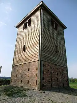 - ↑ Römischer Limes-Wachturm wird nachgebaut. 31. Juli 2012, archiviert vom (nicht mehr online verfügbar) am 31. Juli 2012; abgerufen im August 2021.