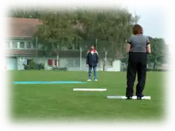 Der Zielwurf besteht aus zehn Würfen auf das Arenbergtuch. Begonnen wird mit fünf Würfen aus einer Entfernung von 10 Metern, danach folgen fünf Würfe aus einer Entfernung von 15 Metern. Der Wurfstil ist beliebig.