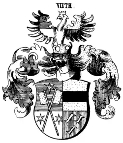 - ↑ Erläuterung Vieth v. Golßenau (1745), in: Christoph Franke. Et. al.: Genealogisches Handbuch des Adels, Adelslexikon, Band XV Tre-Wee, Band 134 der Gesamtreihe GHdA, Hrsg. Deutsches Adelsarchiv, C. A. Starke, Limburg/Lahn 2004, S. 245. ISBN 3-7980-0834-5.