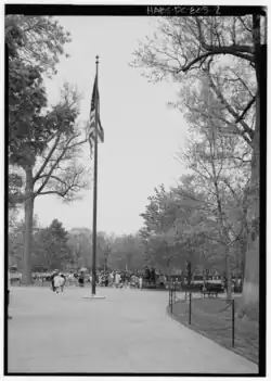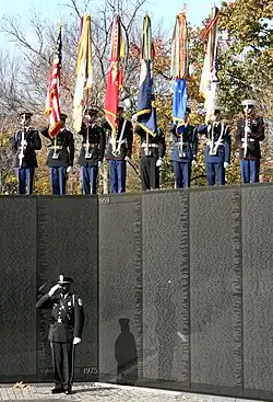 Als erstes Zugeständnis an die Kritiker der Mauer wurde Mitte 1983 ein 18 Meter hoher Fahnenmast hinzugefügt. Um die bronzene Basis sind die Embleme von Army, Navy, Air Force, Marines und Coast Guard angebracht.