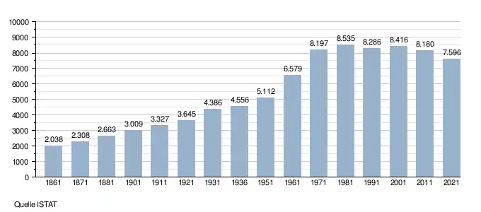 - ↑ Bilancio demografico e popolazione residente per sesso al 31 dicembre 2024. ISTAT. (Bevölkerungsstatistiken des Istituto Nazionale di Statistica, Stand 31. Dezember 2024).