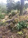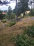Die Burg lag bis zum Ausbau der Straße im englischen Garten des Herrenhauses von Äs. In der Mitte befindet sich auch eine Mauer, an der während des Zweiten Weltkriegs eine Baracke für die Luftüberwachung stand.