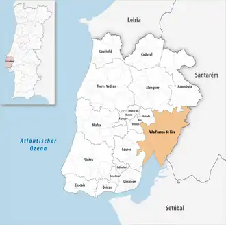 Die Nachbarkreise sind (im Uhrzeigersinn im Norden beginnend): Alenquer, Azambuja, Benavente, Loures sowie Arruda dos Vinhos.