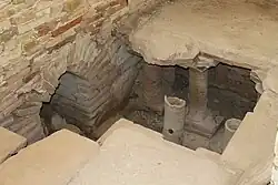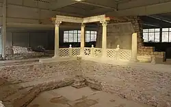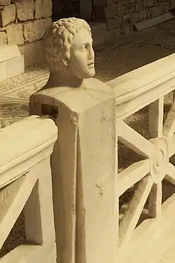 Während der Grabungen wurden gut erhaltene Bodenmosaiken mit figuralen und geometrischen Motiven entdeckt, ebenso Kapitelle, durchbrochene (à jour) Brüstungen in Marmor in Gitterform, die das Wasserbecken umgaben, Pfeiler mit aufgesetztem Kopf (Hermen), Bruchstücke von Säulen, Pilaster und Marmorverzierungen und -verblendungen. Auch viele Keramikgefäße, Schmuckgegenstände und Gegenstände des Alltagsgebrauchs wurden gefunden.
