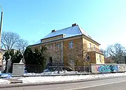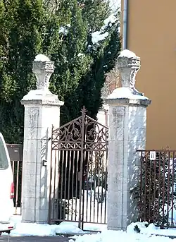 Die ebenfalls in Kalkstein ausgeführte Einfriedung mit Vasen auf den Torpfeilern und das schmiedeeiserne Tor betonen eine hoheitliche Distanz und lässt die Villa wie ein kleines Palais wirken. Auf der südlichen Gartenseite weitet sich das Haus in einem Runderker. An der Westseite befindet sich ein rechteckiger Vorbau mit einem Balkon. Die seitlichen Fassaden, wie auch die Gartenseite sind – im Gegensatz zur nördlichen Frontseite – betont schlicht gehalten.