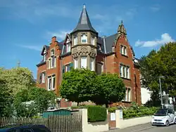 1899 baute Theodor Moosbrugger die neogotische Villa für den Architekten Albert Hagenmayer. Später war die Unternehmerfamilie Kaiser, die die Nahrungsmittelfabrik Otto & Kaiser betrieb, Eigentümerin der Villa. In der Zeit des Nationalsozialismus wohnten dort mit Karl Kaiser (1900–1986) und seiner Frau Sophie (genannt Sascha) Kaiser, geb. Witkowsky, (1899–1983) zwei Mitglieder der Kaiser/Riegraf-Gruppe. Die Villa diente als einer der Treffpunkte dieser sozialistischen Widerstandsgruppe. 1950 war Else Kaiser als Eigentümerin der Villa eingetragen. Im Erdgeschoss lebte Fabrikdirektor Martin Otto, die Obergeschosse waren vermietet.[1] 1961 war im ersten Stock der Bundestagsabgeordnete Helmut Bazille gemeldet.[2]