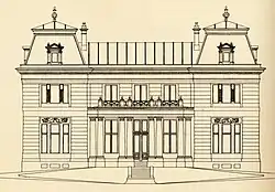 Das Gebäude wurde durch den Badener Baumeister Anton Breyer[1] an Stelle der 1884 um 50.000 Gulden erworbenen Villa Duport [2] errichtet. Zum Haupthaus kamen Gartenhaus, Glashaus, Palmenhaus, Kegelbahn, Tennisplatz, Wasserbecken und Grotte hinzu.[3]