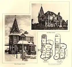 - ↑ a b c d Villa "Heimchen" des Herrn Hauptmann Milinowski in Herrenhausen bei Hannover, Alleestraße (erbaut 1890), Tafel 67 (2 Fotos, Grundrisse, Aufriß), fotomechanisch erstellte Reproduktion der Tafel Nummer 67 in Oswald Haenels Bildband Einfache Villen und Landhäuser ..., Dresden 1902, Tafel 67