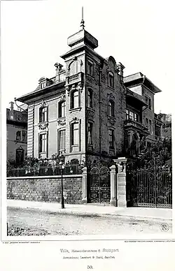- ↑ Lambert & Stahl: Villa Hohenzollernstraße, Stuttgart. (Aus: Moderne Neubauten, 2.Jg., 1895ff, hrsg. W. Kick) im Bestand des Architekturmuseums der Technischen Universität Berlin; abgerufen am 20. Mai 2011.