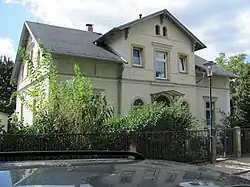 Das 1874 durch den Kötzschenbrodaer Baumeister August Große entworfene Wohnhaus durfte im März 1876 bezogen werden. Der Putzbau wird durch Gesimse sowie Eckquaderungen gegliedert, dazu kommen Stuckornamente und Sandsteingewände und Verdachungen. Der rundbogige Hauseingang befindet sich auf der Rückseite des Hauses.