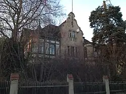 Die mitsamt ihrer Einfriedung sowie dem Garten (als denkmalpflegerische Nebenanlage) denkmalgeschützte Mietvilla,[1] auch als Villa eingeordnet,[2] ist ein großes, zweigeschossiges Wohnhaus mit einem ziegelgedeckten Walmdach. Sie steht auf einem Souterraingeschoss, hat eine „malerisch-unregelmäßige Aufriss- und Dachausbildung“ mit einem teilweise ausgebauten Dachgeschoss.