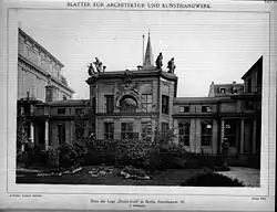 Im Zweiten Weltkrieg brannte das Innere infolge eines alliierten Bombenangriffs im November 1943 aus. Erhalten blieben die Außenmauern mit dem gesamten Fassadenschmuck Schlüters. Im August 1945 standen nur noch die Gartenfassade und die Mauern des Saals.[6] Die vor der Sprengung der Ruine im Jahre 1950 vom Dach des Mittelbaus abgenommenen vier Figuren sind seit 1953 in der Kamekehalle im Bode-Museum ausgestellt.[7] Einige andere plastische Überreste kamen ins Märkische Museum.[8] Das Grundstück der Villa ist in die Fläche des Presse- und Informationsamtes der Bundesregierung integriert und überbaut.[9]