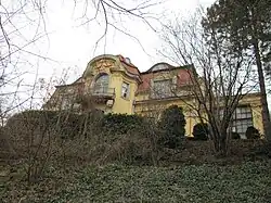 Die eingeschossige, mit Torhaus (Nr. 16), Toranlage und Einfriedung unter Denkmalschutz[4] stehende Villa liegt tief im Grundstück auf einem ehemaligen Weinbergshang. Der reich gegliederte Putzbau wird durch Stuckdekor verziert, die Fenster werden durch Sandsteingewände eingefasst.