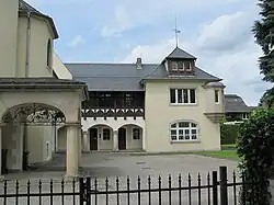 In den Jahren 1929 bis 1933 wurden die reichgegliederten Volutengiebel von Haupt- und Nebengebäude vereinfacht sowie insgesamt die Putzgliederung reduziert. Ebenfalls im Jahr 1933 wurde im westlichen Teil des Grundstücks eine Tankstelle eröffnet.
