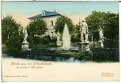 - ↑ a b Informationstafel des vereins für denkmalpflege und neues bauen radebeul zur Geschichte des Platzes und seiner Fontäne.