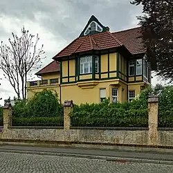 Das Gebäude ist ein zweigeschossiger Putzbau im Stil der Heimatschutzarchitektur. Es hat einen vieleckigen Grundriss mit verschiedenen Walm- und Satteldächern, unter anderem einem Fußwalmdach an der östlichen Gebäudeseite. Die Villa hat eine Vielzahl von unterschiedlichen Fensterformen. Das Obergeschoss kragt leicht hervor, ist als Fachwerk ausgebildet und mit mehreren Erkern versehen. An der südöstlichen Gebäudeecke liegt der Haupteingang mit vorgelagerter Freitreppe, im Westen neben der Grundstückszufahrt befindet sich ein Nebeneingang. Im Inneren ist die historische Raumstruktur noch erhalten. Die Villa hat ein mit Paneelen geschmücktes Foyer mit einem Kamin und einen großzügigen hölzernen Treppenaufgang.[3]