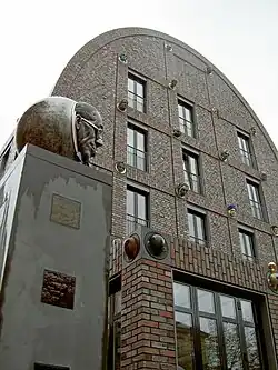 So finden sich an der Fassade zum Hillerplatz Christoph Columbus und Charlie Chaplin ebenso wie der britische Mathematiker Stephen Hawking oder die Geigerin Anne-Sophie Mutter.[2]