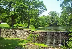 - Die Reste der Smith-Knight Grist Mill befinden sich direkt daneben. Von dem um 1750 entstandenen Bauwerk sind nur Grundmauern, Staudamm, Abflusskanal und Mühlbach erhalten. Der große Mühlteich liegt heute im Zentrum eines kommunalen Parks.