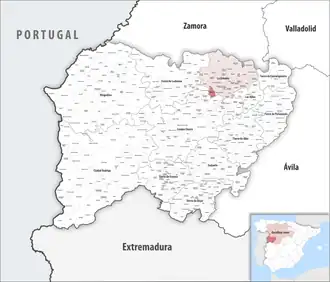 Die Gemeinde besteht aus den Ortschaften Anantapur, El Pajarón, Las Acacias, Las Canteras, Los Álamos, Los Almendros, Los Páramos, Los Rosales, Mozodiel de Sanchiñigo, Vega de Salamanca und Villamayor und liegt mit ihrem Hauptort etwa vier Kilometer in nordnordwestlicher Richtung vom Stadtzentrum Salamancas. Am südlichen Rand der Gemeinde führt die Autovía A-62 entlang.