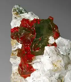Unter UV-Licht zeigt das Mineral eine dunkelrote oder orange bis gelbe Fluoreszenz.