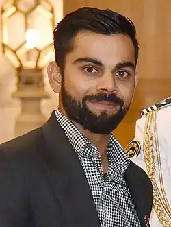 Virat Kohli (Hindi विराट कोहली; * 5. November 1988 in Delhi, Indien) ist ein indischer Cricketspieler, der mit 19 Jahren sein Debüt in der indischen Nationalmannschaft gab und ihr ehemaliger Kapitän ist. Mit dem indischen Team gewann er den Cricket World Cup 2011 und wurde beim ICC World Twenty20 2014 und 2016 als Spieler des Turniers ausgezeichnet. Er wurde 2018 als dritter Cricketspieler überhaupt mit dem Rajiv Gandhi Khel Ratna ausgezeichnet. ESPN listet ihn als einen der bekanntesten Sportler weltweit und 2018 wurde er von Time als einer der einhundert einflussreichsten Persönlichkeiten bestimmt.