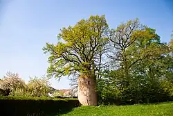 Schloßstraße: Martersäule und Holzfigur des heiligen Nepomuk