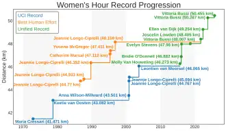 - ↑ Vittoria Bussi breaks Evelyn Stevens's hour record. In: velonews.com. 13. September 2018, abgerufen am 27. August 2020.