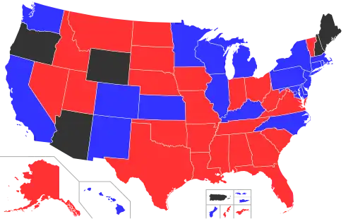 Die fünf Staaten ohne Vizegouverneur sind Arizona, Maine, New Hampshire, Oregon und Wyoming. In diesen Staaten wird der Gouverneur durch den jeweiligen Senatspräsidenten (Maine, New Hampshire) oder Innenminister (Secretary of State) vertreten.[3] Der Staat New Jersey führte das Amt erst im Jahr 2010 ein, wobei jedoch der Vizegouverneur gleichzeitig einen Kabinettsposten oder ein vergleichbares Amt innehaben muss. In Alaska, Hawaii und Utah übernimmt der Vizegouverneur die Aufgaben des Secretary of State.