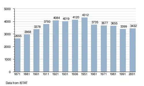 - ↑ Bilancio demografico e popolazione residente per sesso al 31 dicembre 2024. ISTAT. (Bevölkerungsstatistiken des Istituto Nazionale di Statistica, Stand 31. Dezember 2024).