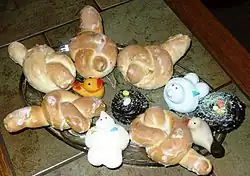 Am Vorabend des 25. Januar stellen Kinder einen Teller auf das Fensterbrett oder vor die Tür. Am nächsten Morgen finden sich darauf dann Süßigkeiten in Form von Vögeln oder Nestern. Besonders typisch sind dabei mit Zuckerguss überzogene Teigvögel, die „Sroki“ (Elstern, Singular: Sroka). Größter Beliebtheit erfreuen sich auch die Schmätzl (Baiservögel oder -häubchen, die innen manchmal noch weich und klebrig sind). Regional, z. B. in Luckau, werden diese auch Tschiepchen (damit ist ein Küken gemeint) genannt. Auch so genannte Kremnester (bestehend aus einem Keksboden, darauf eine Butterkremschicht in Form eines Nestes mit dunkler Schokolade überzogen und bunten Zuckereiern in der Mitte) gehören zur Vogelhochzeit. Im Verständnis des Brauchs sind die Leckereien von Vögeln gebracht worden, die sich durch diese Beteiligung der Kinder am Hochzeitsmahl für die Winterfütterung bedanken.